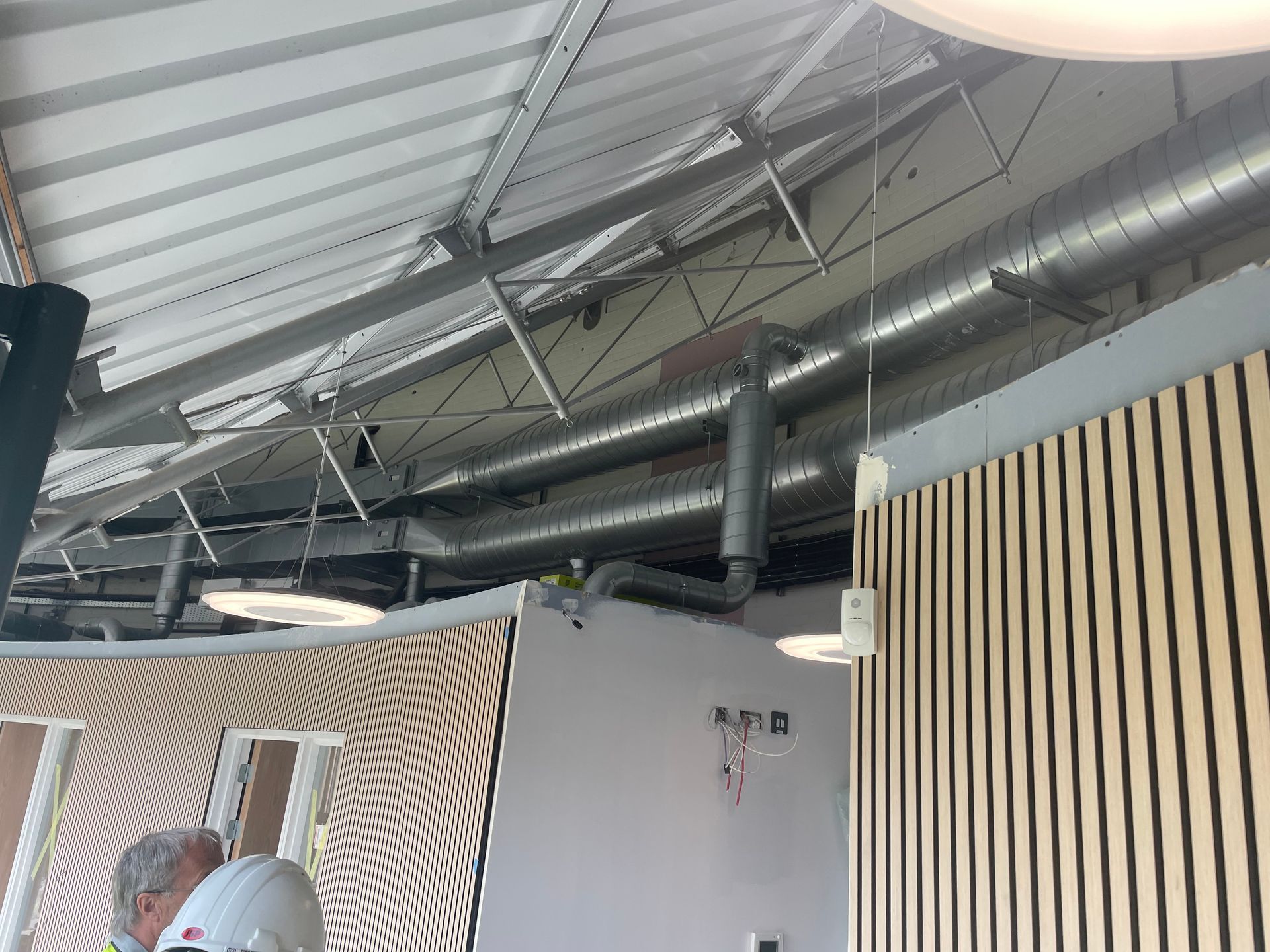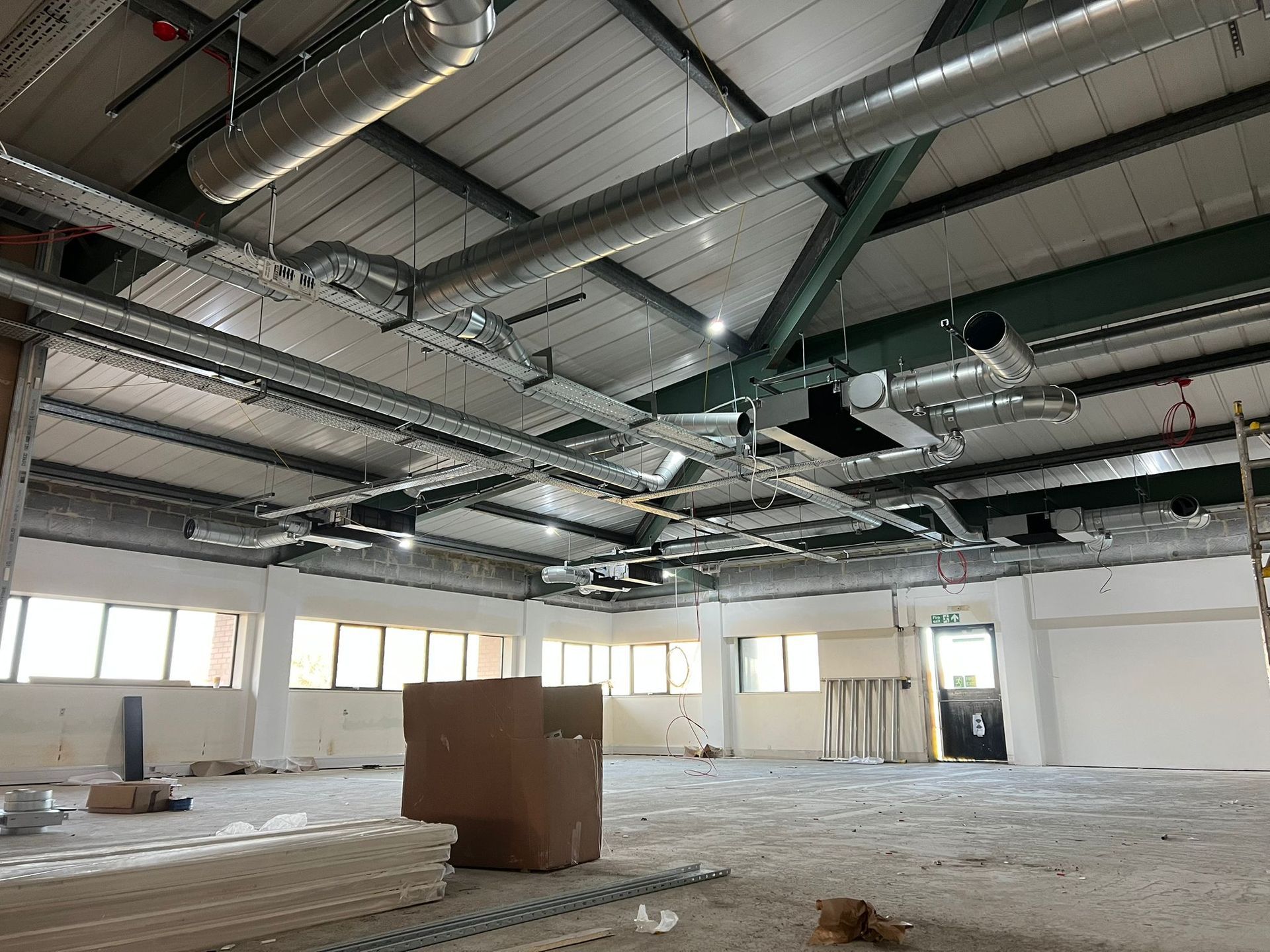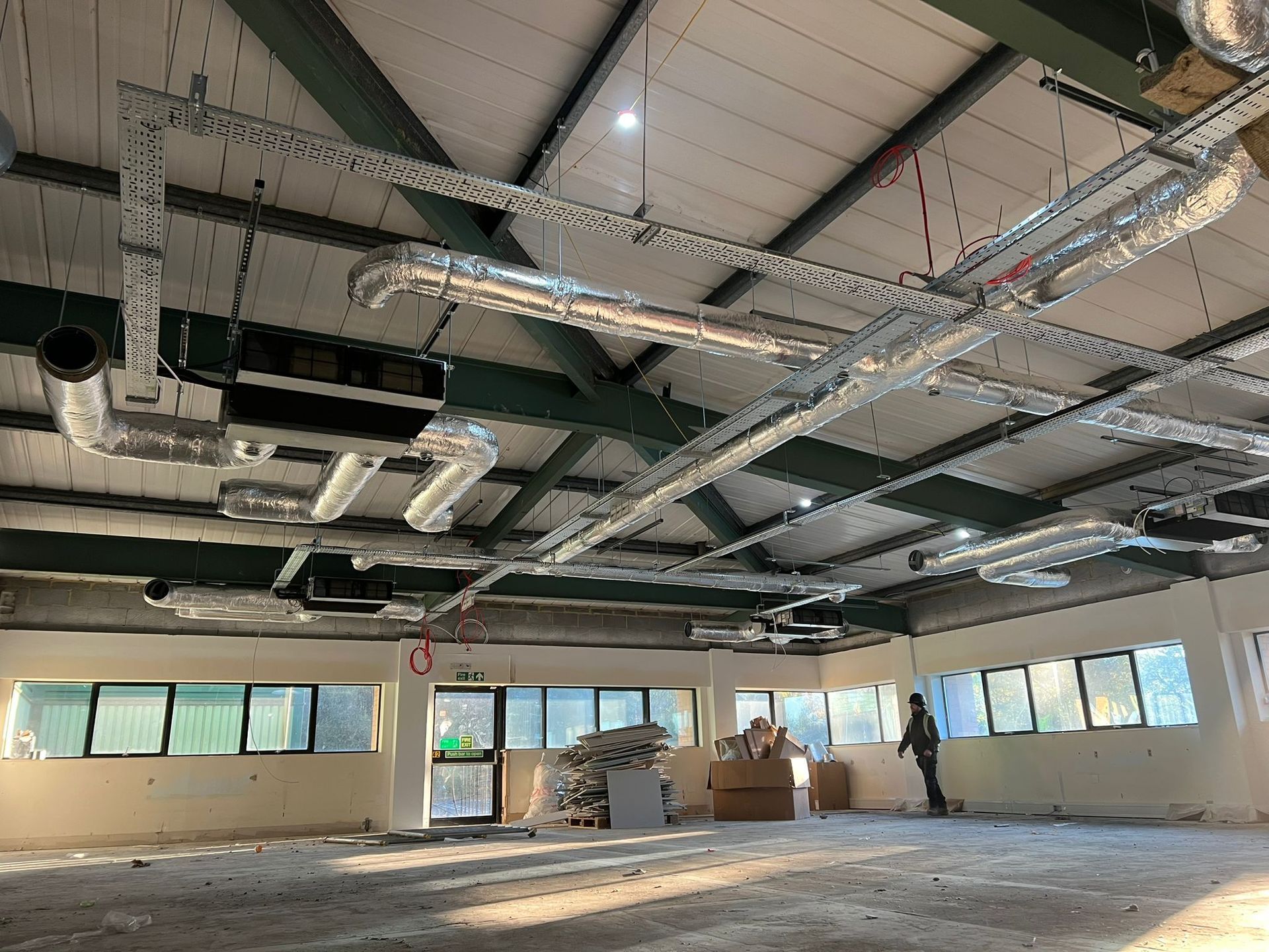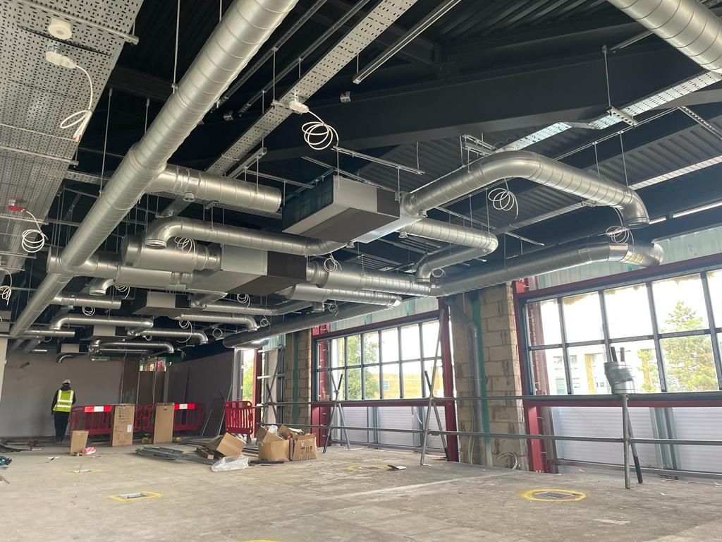 Project Currently Live M&S: MVHR systems have been installed to serve the general room ventilation, supplying air to 26 fan coil units. The project also includes two toilet extract systems, incorporating a large number of air grilles throughout the building. First fix installation has been successfully completed across the main office areas. Works are currently ongoing within the plant area, where ductwork installation is progressing in preparation for the ceiling installation and subsequent second fix works. Kallum has recently been promoted to a fitter and has really stepped up by taking this job on.