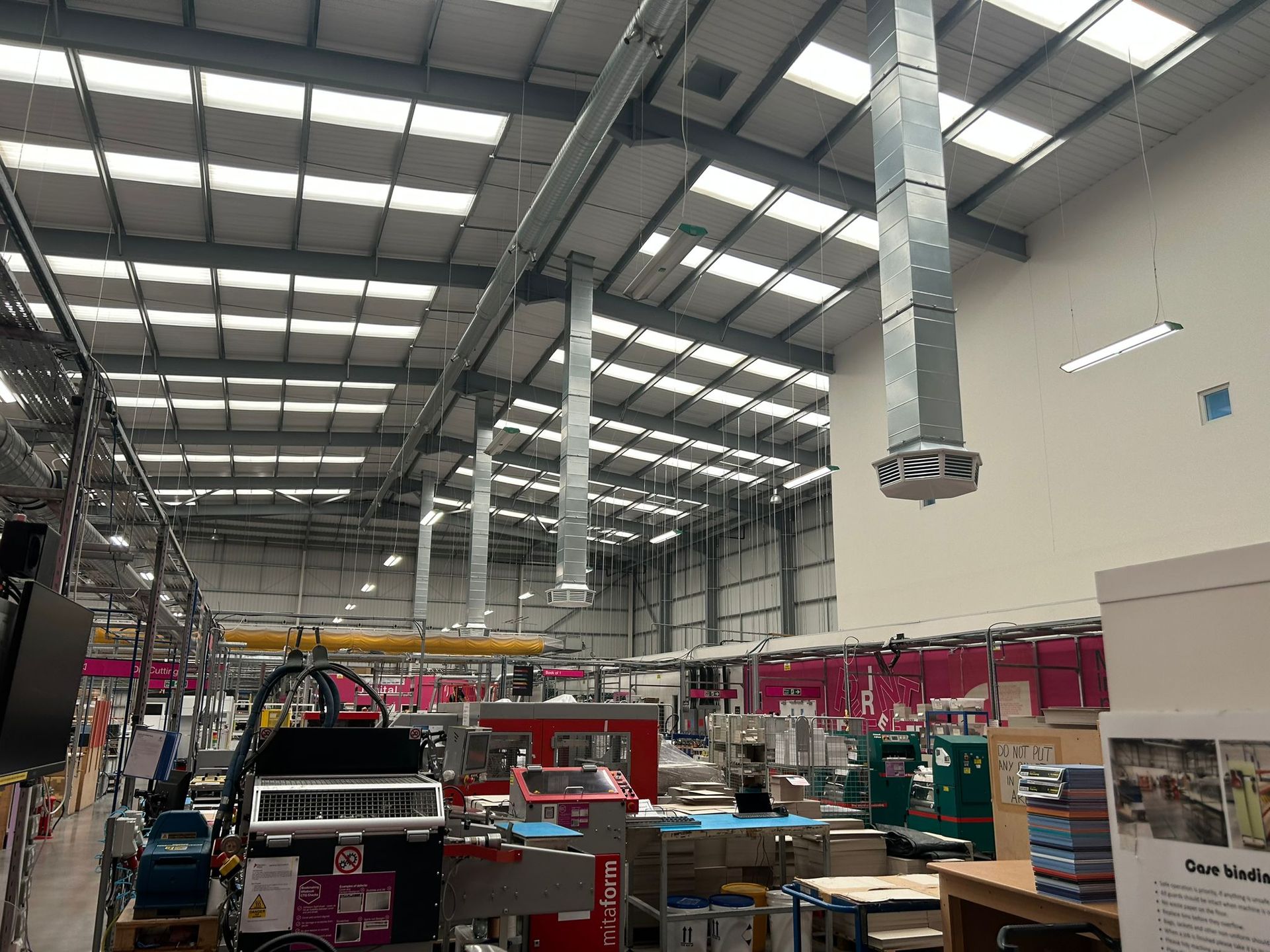 August Case Study Precision Proco: We installed eight evaporative coolers and four extract fans to improve the airflow within the factory. The works included cutting roof penetrations and fitting new roof sheets to ensure a watertight finish.Using scissor lifts, we suspended the ductwork beneath the roof to deliver cooled air to a lower level, helping reduce temperatures across the production space.